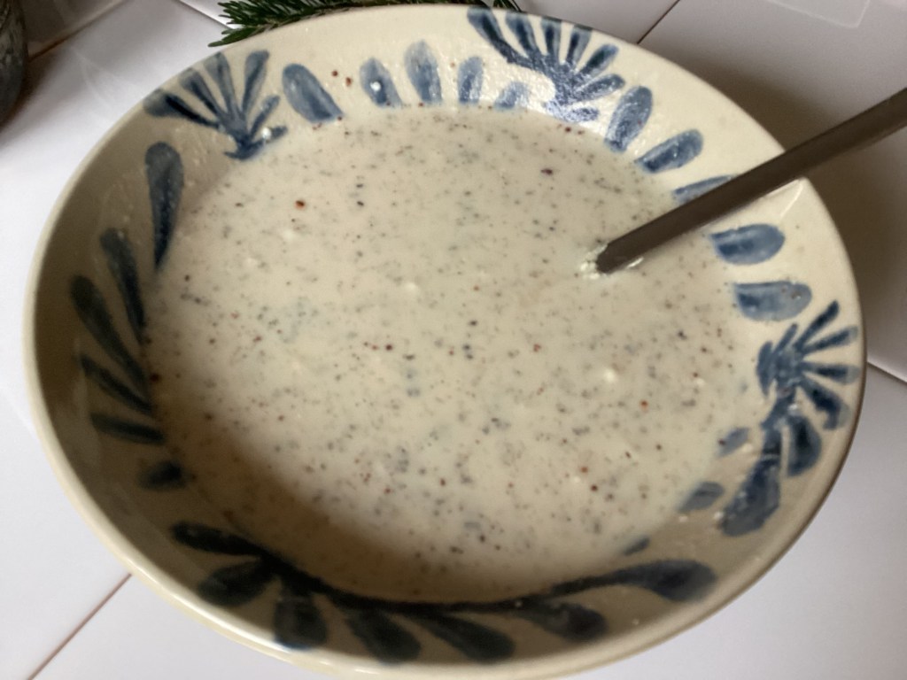 Zutaten gut verrühren, bis sich die Klümpchen gelöst haben.