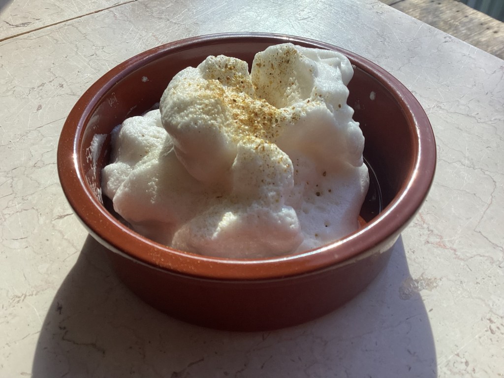 Das Aquafaba mit dem Süßungsmittel und dem Limettensaft mit einem Rührgerät einige Minuten schaumig schlagen.